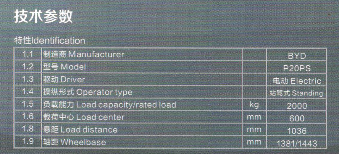 比亞迪P20PS站駕托盤搬運(yùn)車