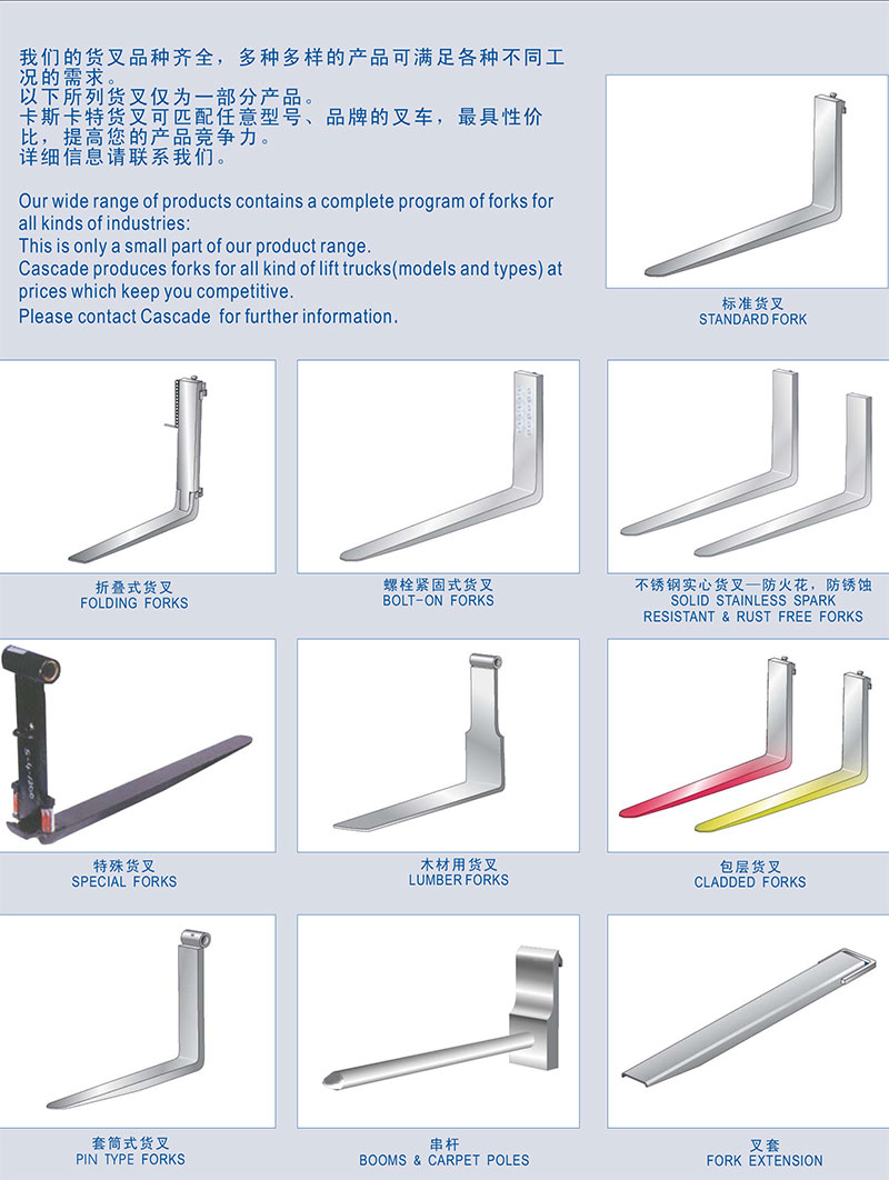 卡斯卡特貨叉(Forks)_叉車配件_配件供應(yīng)中心_產(chǎn)品中心_廈門永新昌機(jī)械設(shè)備有限公司