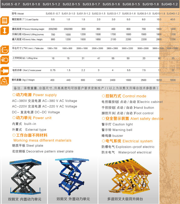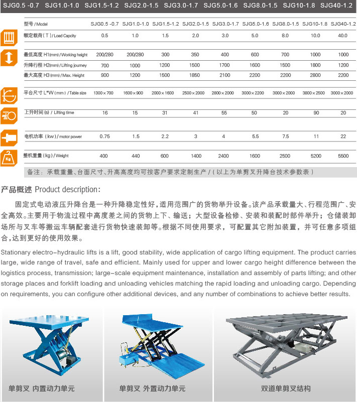 固定式電動(dòng)液壓升降臺(tái)是一種升降穩(wěn)定性好,適用范圍廣的貨物舉升設(shè)備。該產(chǎn)品承載量大、行程范圍廣、安全高效。主要用于物流過程中高度差之間的貨物上下、輸送;大型設(shè)備檢修、安裝和裝配時(shí)部件舉升;倉儲(chǔ)裝卸場所與叉車等搬運(yùn)車輛配套進(jìn)行貨物快速裝卸等。根據(jù)不同使用要求,可配置其它附加裝置,并可任意多項(xiàng)組合,達(dá)到更好的使用效果。