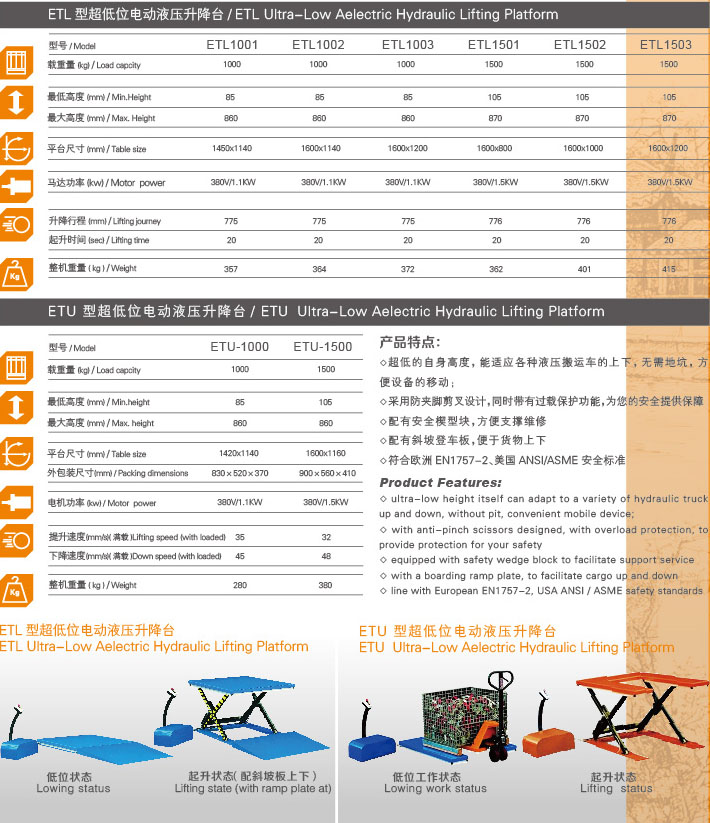 超低的自身高度,能適應(yīng)各種液壓搬運(yùn)車的上下,無(wú)需地坑,方便設(shè)備的移動(dòng);